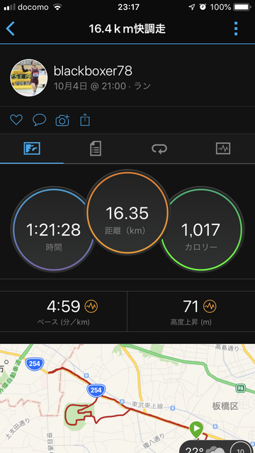 ■10/4:16.4km快調走(ave4'59/km)